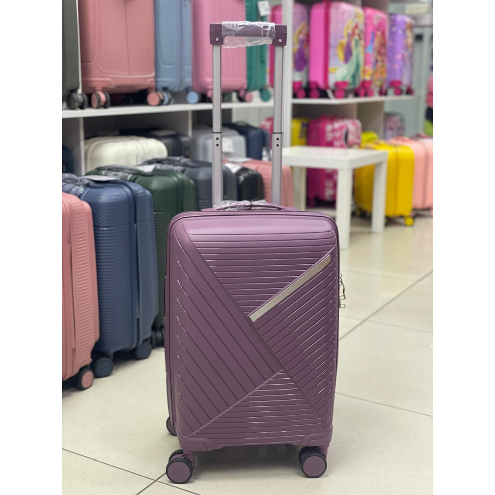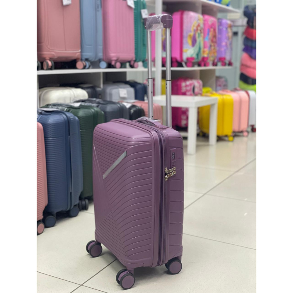 Чемодан 20 дюймов фиолетовый с расширением из полипропилена (ручная кладь)